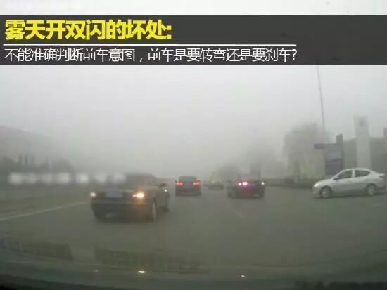 小结: 雾霾天正常行车过程中开双闪是不可取的,一是双闪在雾天的穿透力没有雾灯强,二是雾天开双闪会严重影响后车的判断,给行车留下了很大的安全隐患。